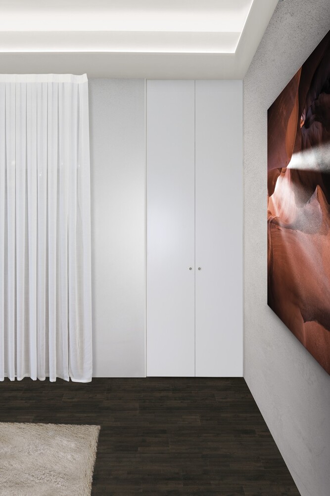 Il Sistema Cabina Armadio ha pensato anche a quelle zone della casa che vanno valorizzate con lo stesso impegno delle altre; è studiato per rendere fruibile una nicchia antiestetica,per realizzare una capiente scarpiera, per nascondere una lavatrice o un’asciugatrice, per occultare quadri elettrici o contatori, regalando eleganza e funzionalità alla casa.